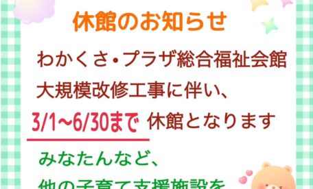 わかくさ児童センター休館のお知らせ