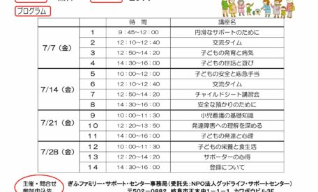 ぎふファミリー・サポート・センター提供会員養成講座のお知らせ