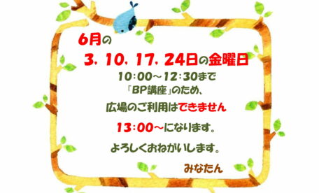 みなたん広場…BP講座の為 ご利用できない時間があります!!