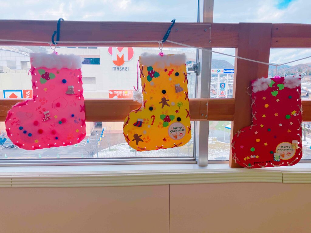 ママもいろんなアイディア考えながら、親子でそれぞれとっても素敵なクリスマスブーツができちゃいました~!!