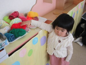 いろんな色の毛糸、悩んじゃうね。でもちゃんとママに好きな色を伝えていました✨