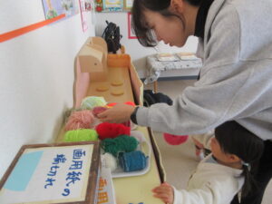いろんな色の毛糸、悩んじゃうね。でもちゃんとママに好きな色を伝えていました✨