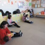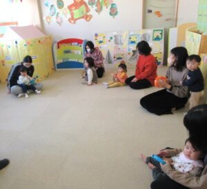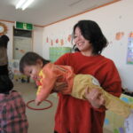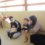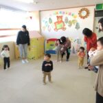 歌に合わせて、元気なあいさつ、かわいい声のあいさつも上手にできたね。