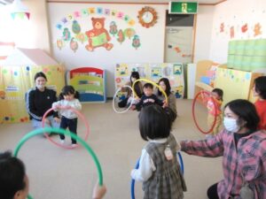 フラフープでも、いろいろな遊びを楽しみました🎵