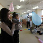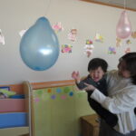 風船にタッチ
